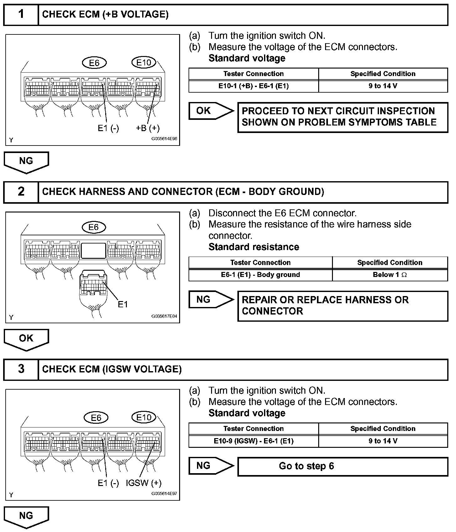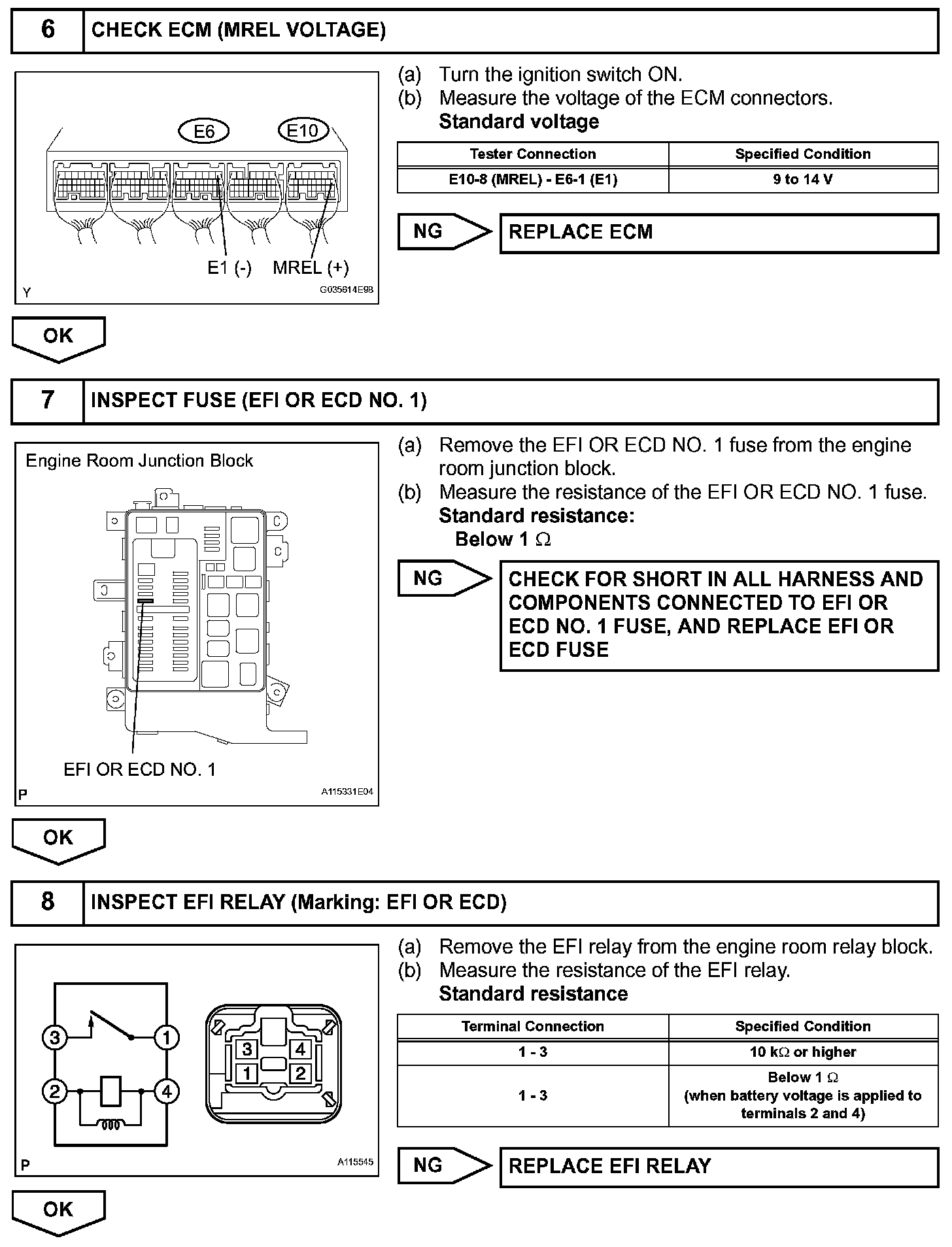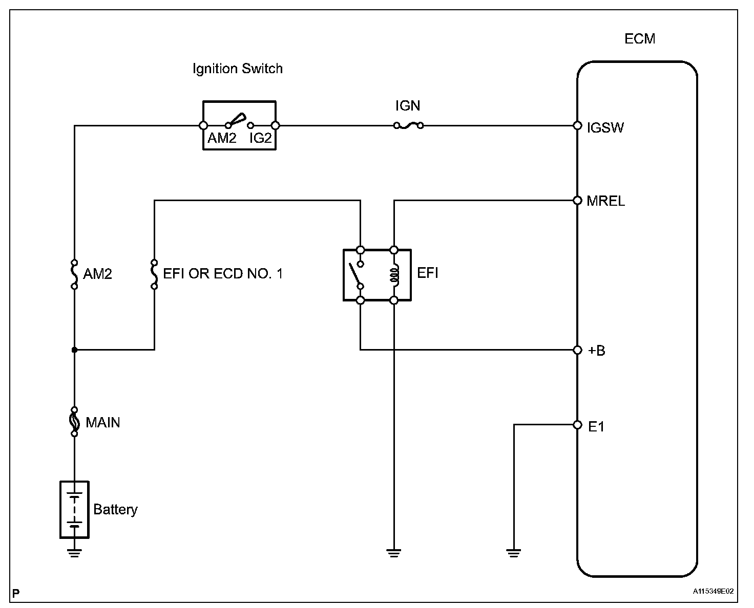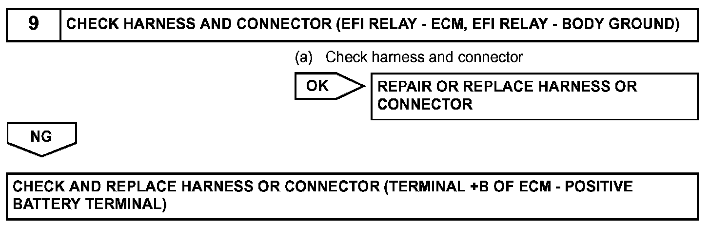 This signal causes current to flow to the coil, closing the contacts of the EFI relay and supplying power to terminal +B of the ECM.