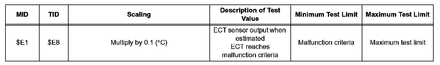 The test value and test limit information are described as shown in the table. This information is included under "MONITOR RESULT" in the emissions-related DTC sections: Thermostat