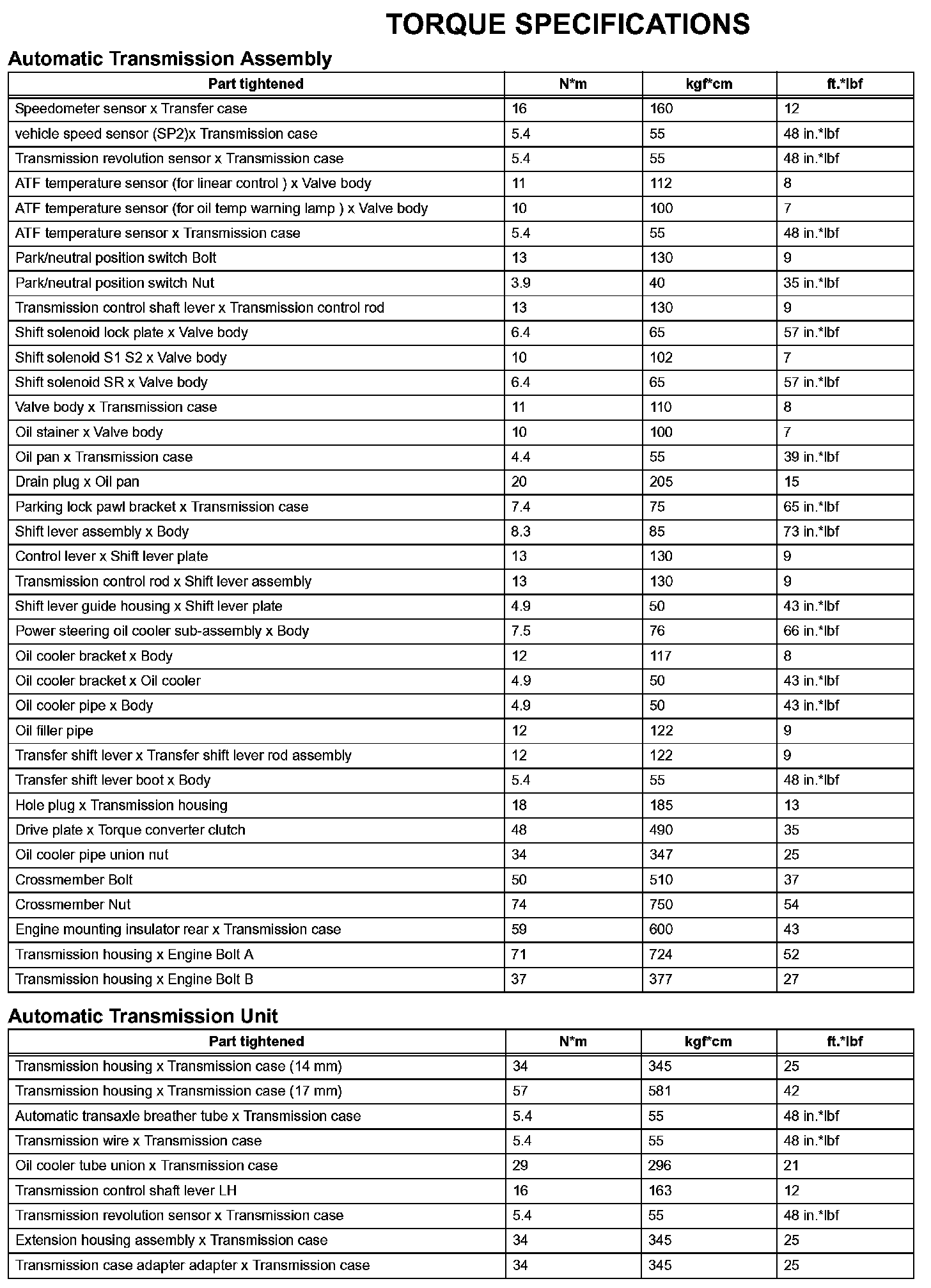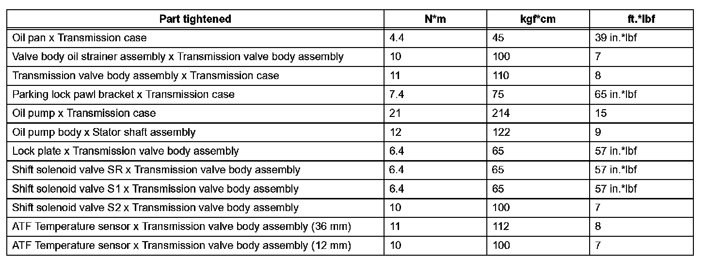 Automatic Transmission-Torque Specifications (Part 1):
