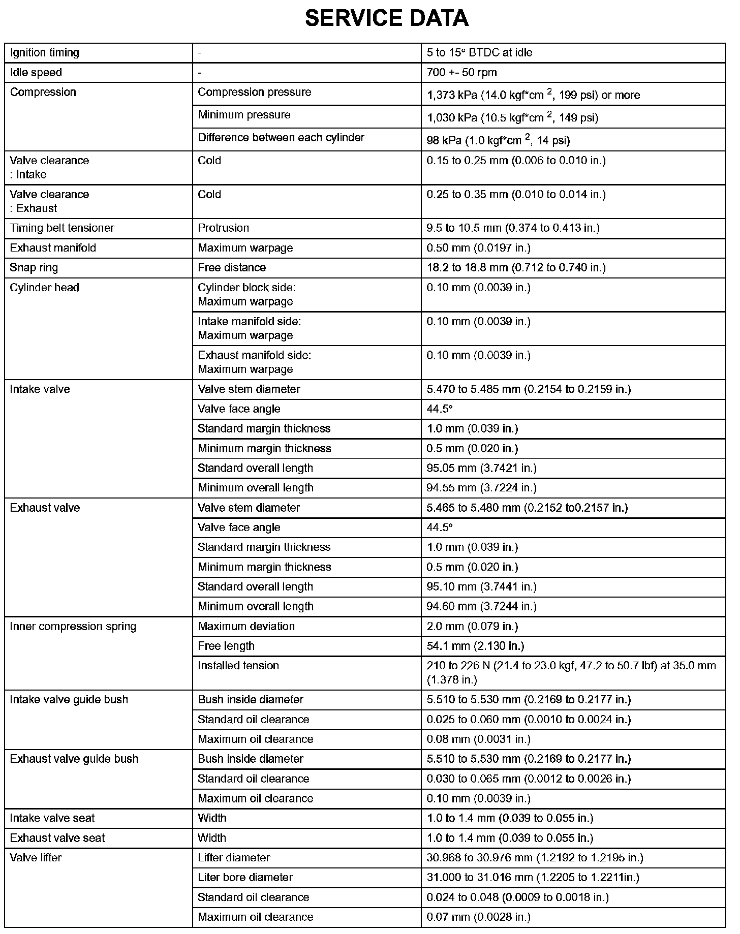 Engine Mechanical-Service Data (Part 1):