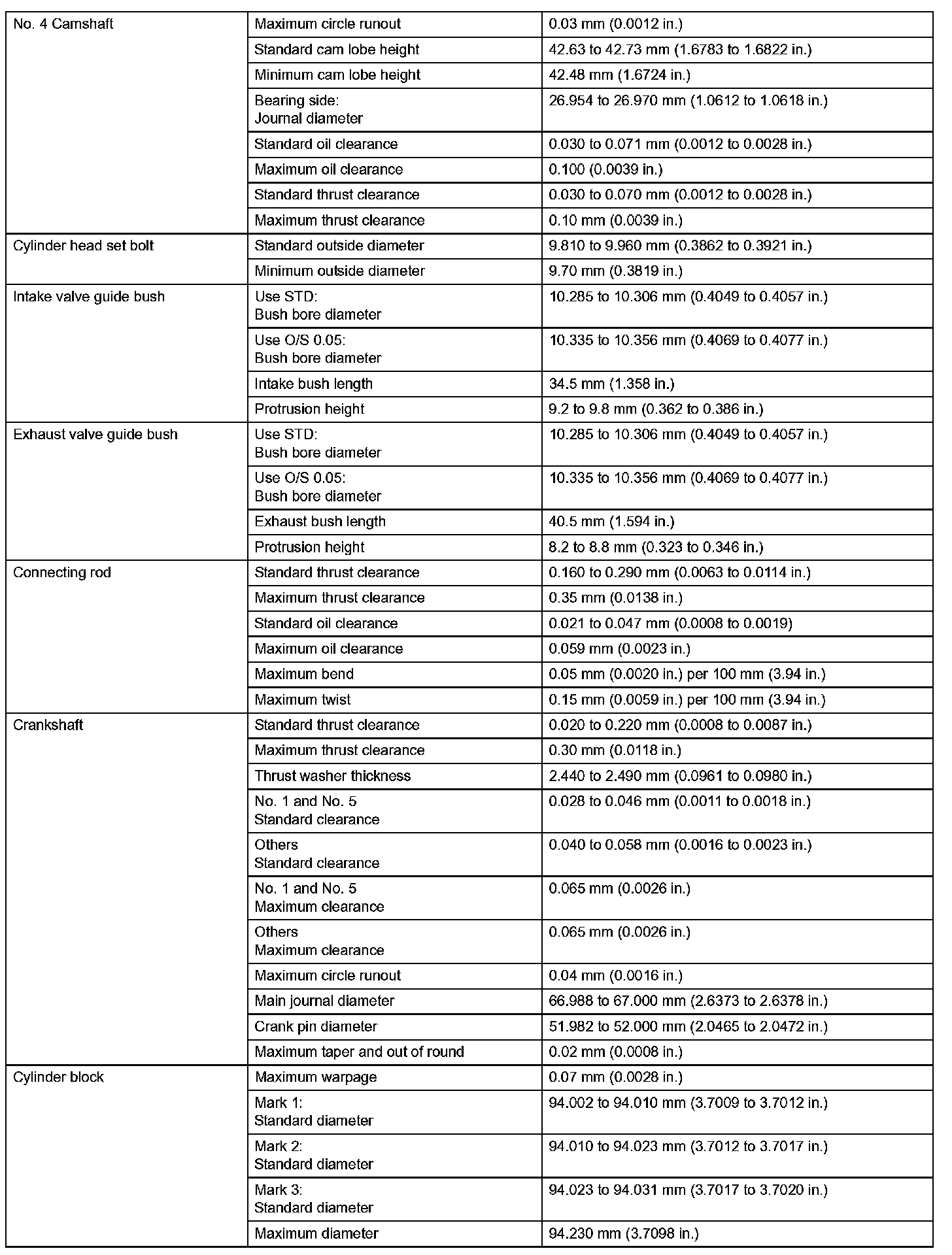 Engine Mechanical-Service Data (Part 4):
