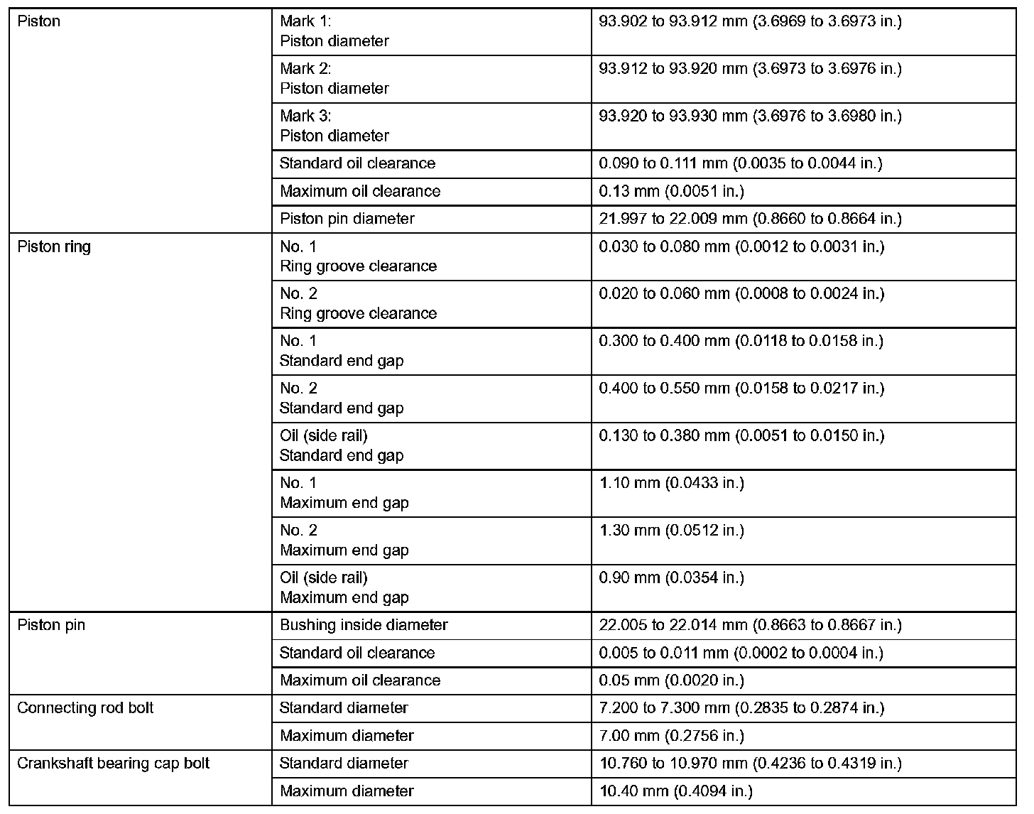 Engine Mechanical-Service Data (Part 2):
