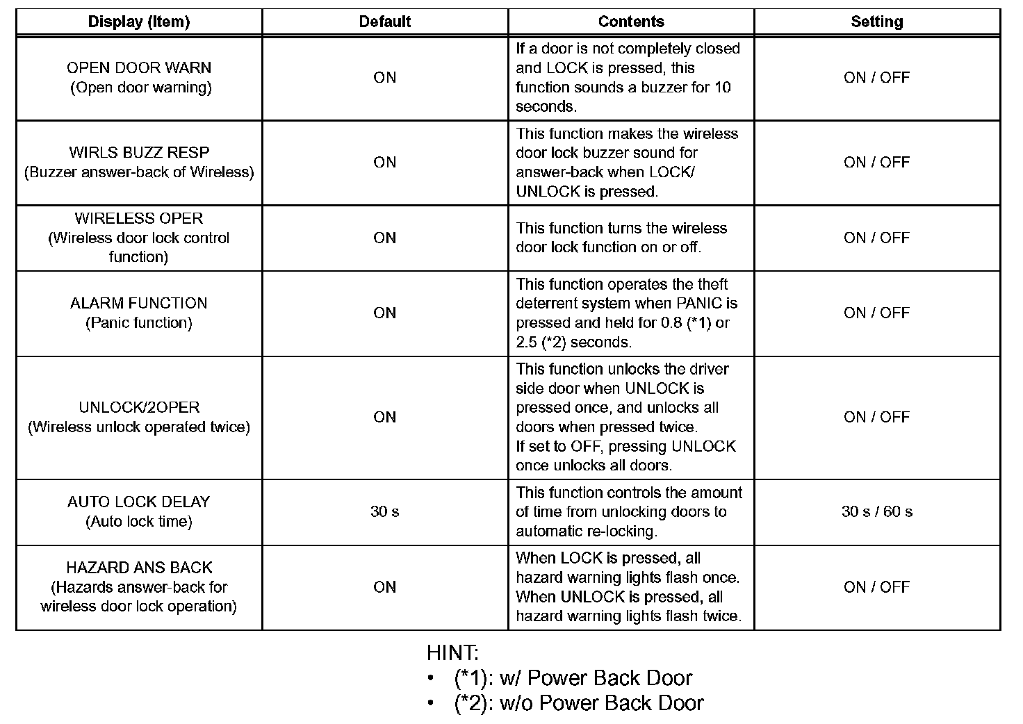 CUSTOMIZE PARAMETERSHINT: The following items can be customized.