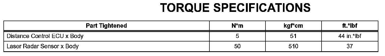 Cruise Control-Torque Specificatons: