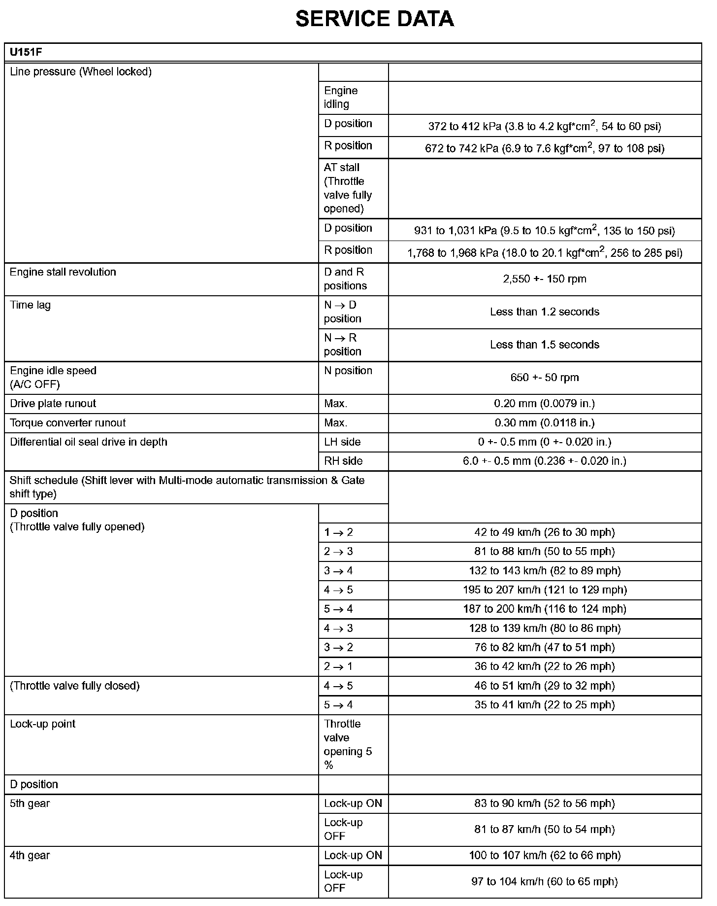 Automatic Transaxle-Service Data (Part 4):