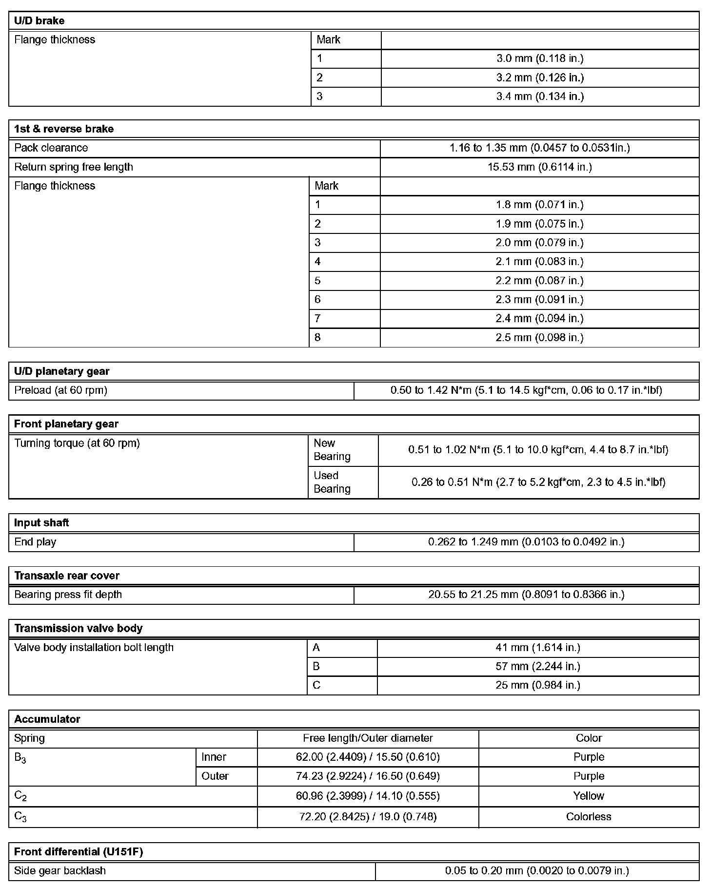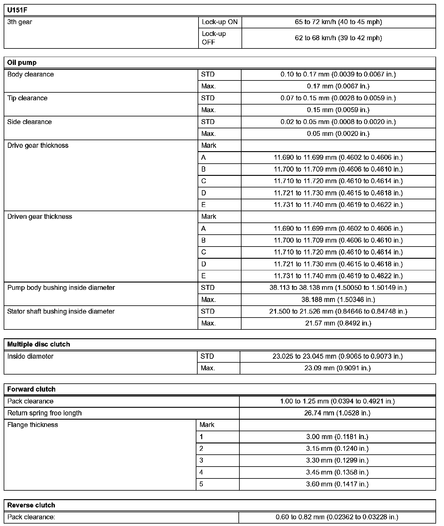 Automatic Transaxle-Service Data (Part 2):
