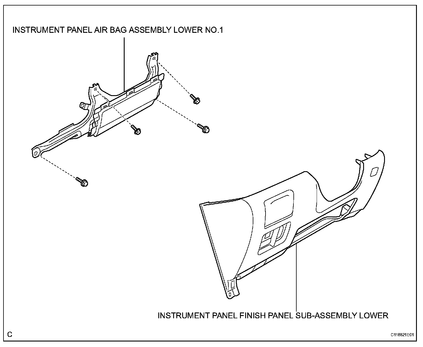 5. REMOVE INSTRUMENT PANEL AIR BAG ASSEMBLY LOWER NO.1