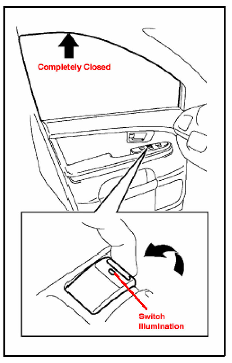 3. Pull up the driver's door power window switch until the window closes, and hold it for approximately one second. At this time, the driver's door power window switch illumination changes from blinking to constant illumination.