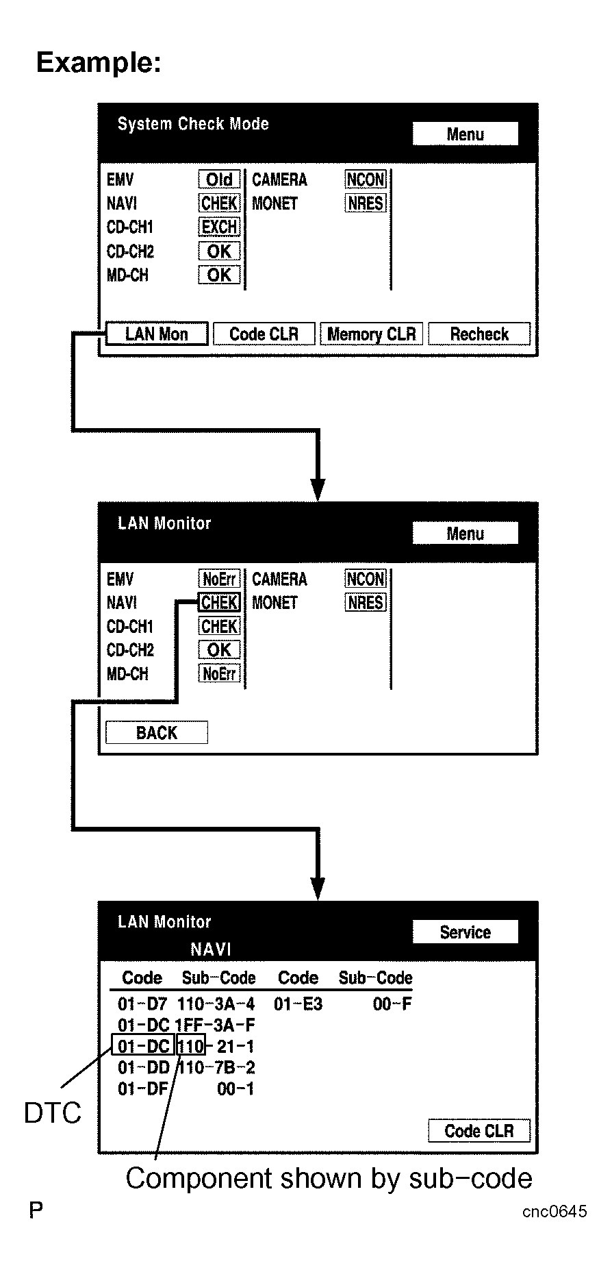 - Referring to Fig 3 below, check the AVC-LAN circuit between the stereo component amplifier and the component shown by the sub-code.