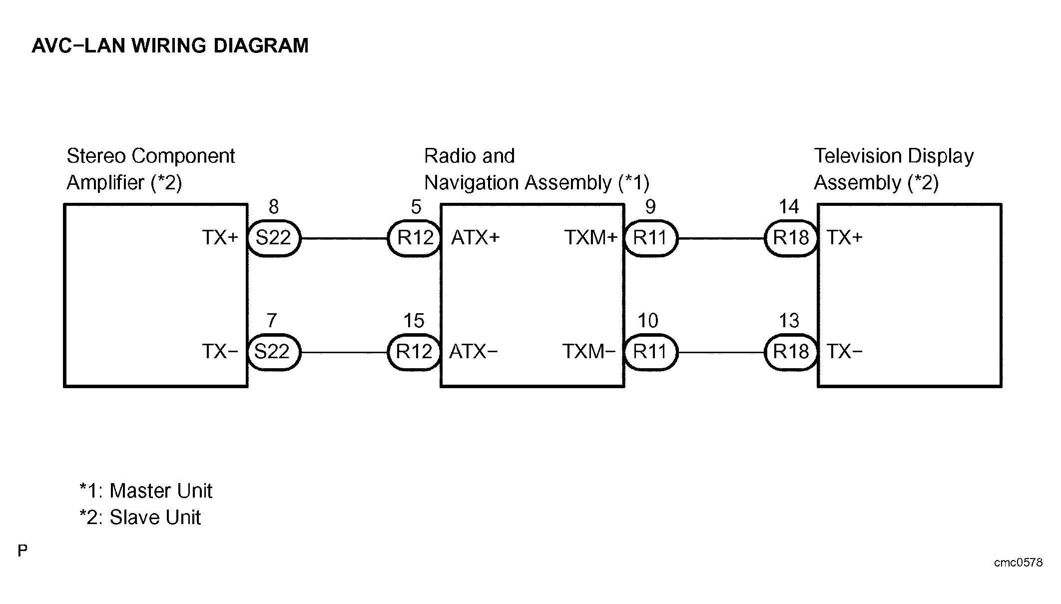 - Referring to Fig 3 below, check the AVC-LAN circuit between the television display assembly and the component shown by the sub-code.