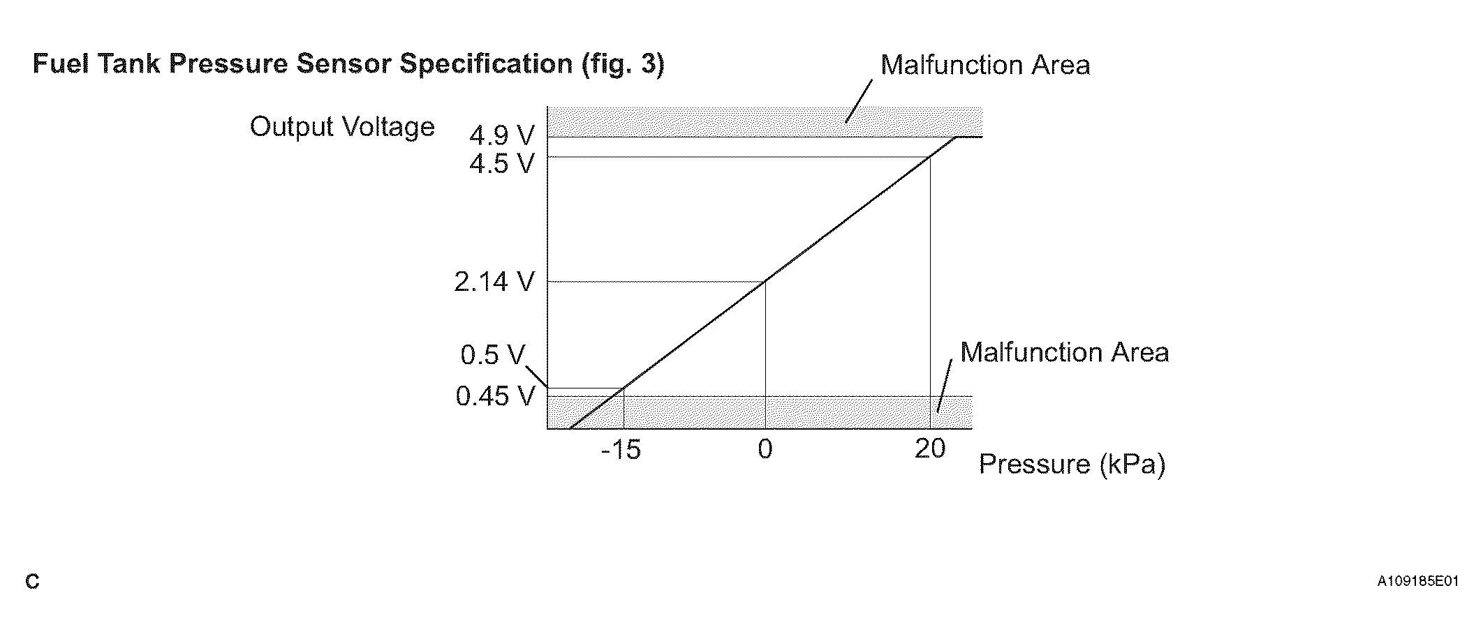 Fuel tank pressure sensor Converts fuel tank pressure into voltage and outputs that voltage. ECM supplies a constant voltage of 5 V to pressure sensor and uses feedback from sensor to monitor fuel tank pressure. (Fig 5)
