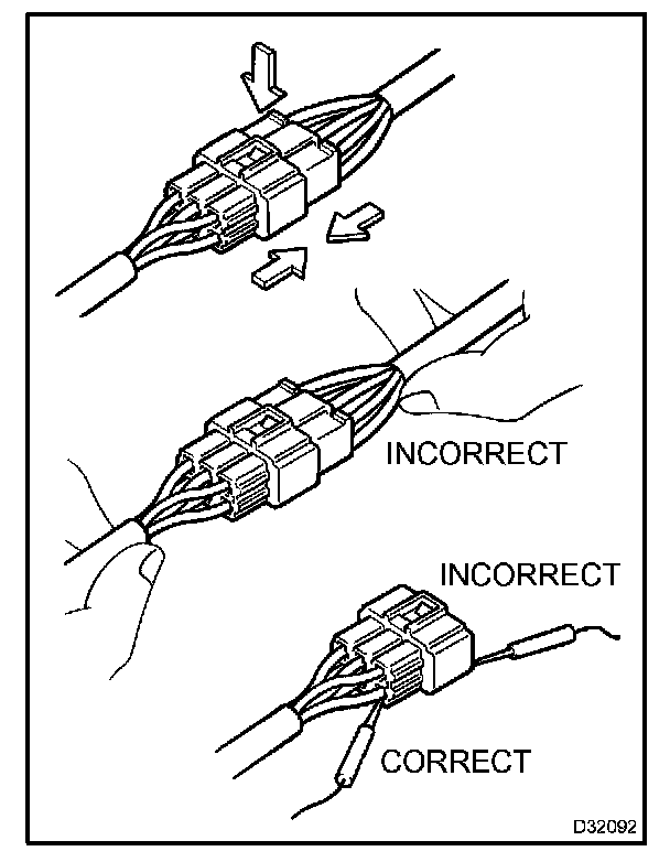 2. When disconnecting a connector, do not pull on the harnesses. Grasp the connector directly and separate it.