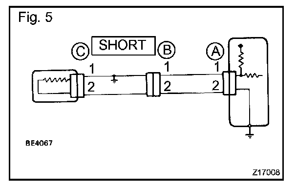 CHECK FOR SHORT CIRCUITSa. If the wire harness is ground shorted (Fig. 5), locate the section by conducting a resistance check with the body ground (below).