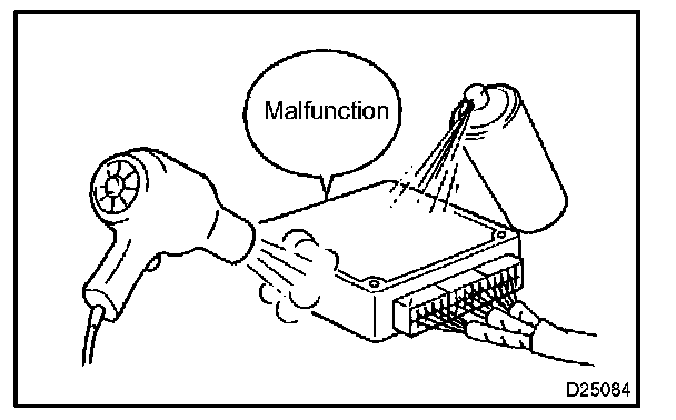 Vibration, heat or water penetration (moisture) is difficult to reproduce. The symptom simulation tests below are effective substitutes for the conditions and can be applied on a stationary vehicle. Important points in the symptom simulation test: