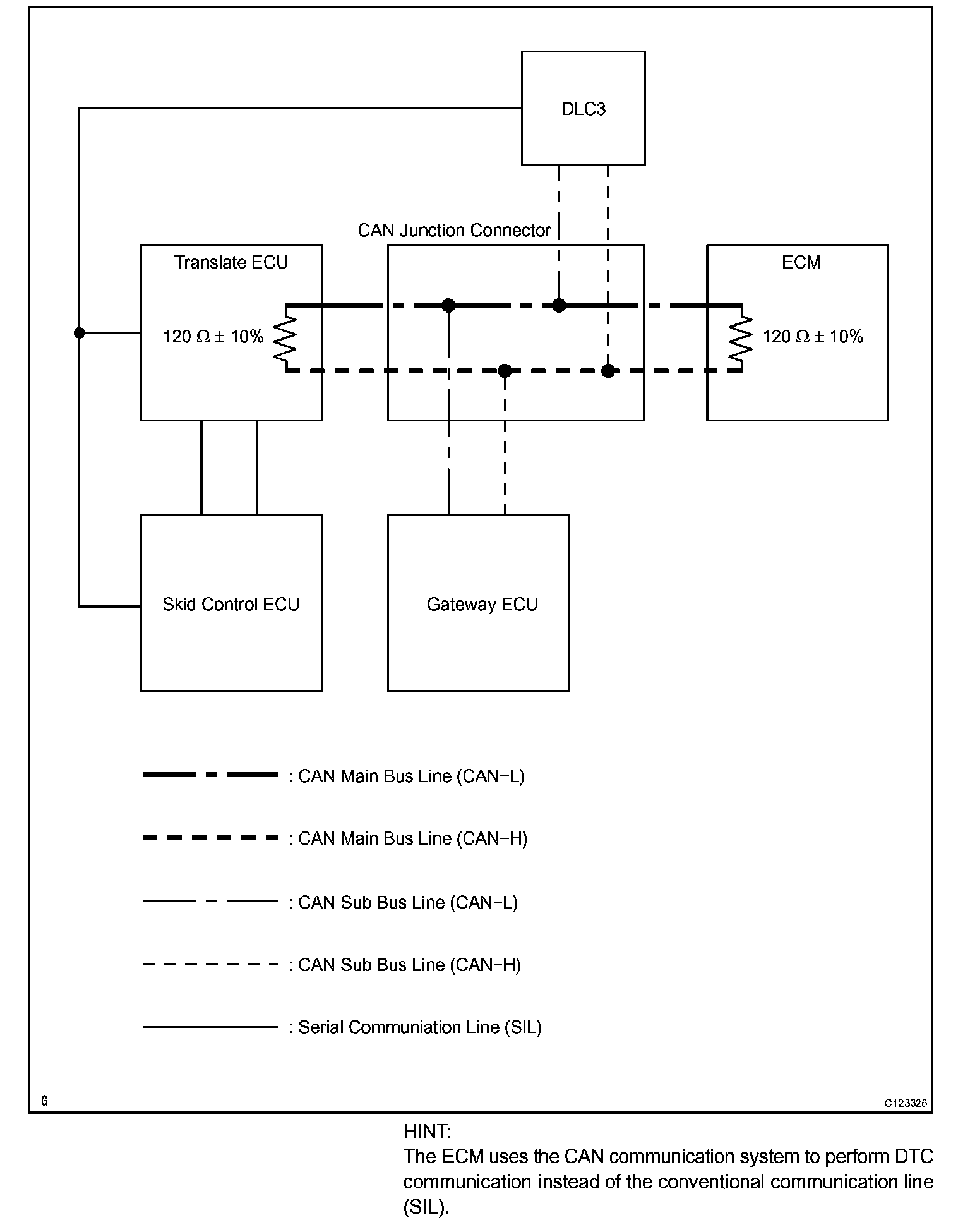 c. While the skid control ECU assembly uses the serial communication line, the ECM uses the CAN communication line. The translate ECU enables communication between the skid control ECU assembly and the ECM by converting the communication types.