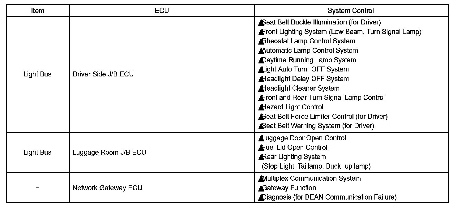 - Even if a malfunction occurs in another bus or in the network gateway ECU, the basis controls within the same bas will still function.