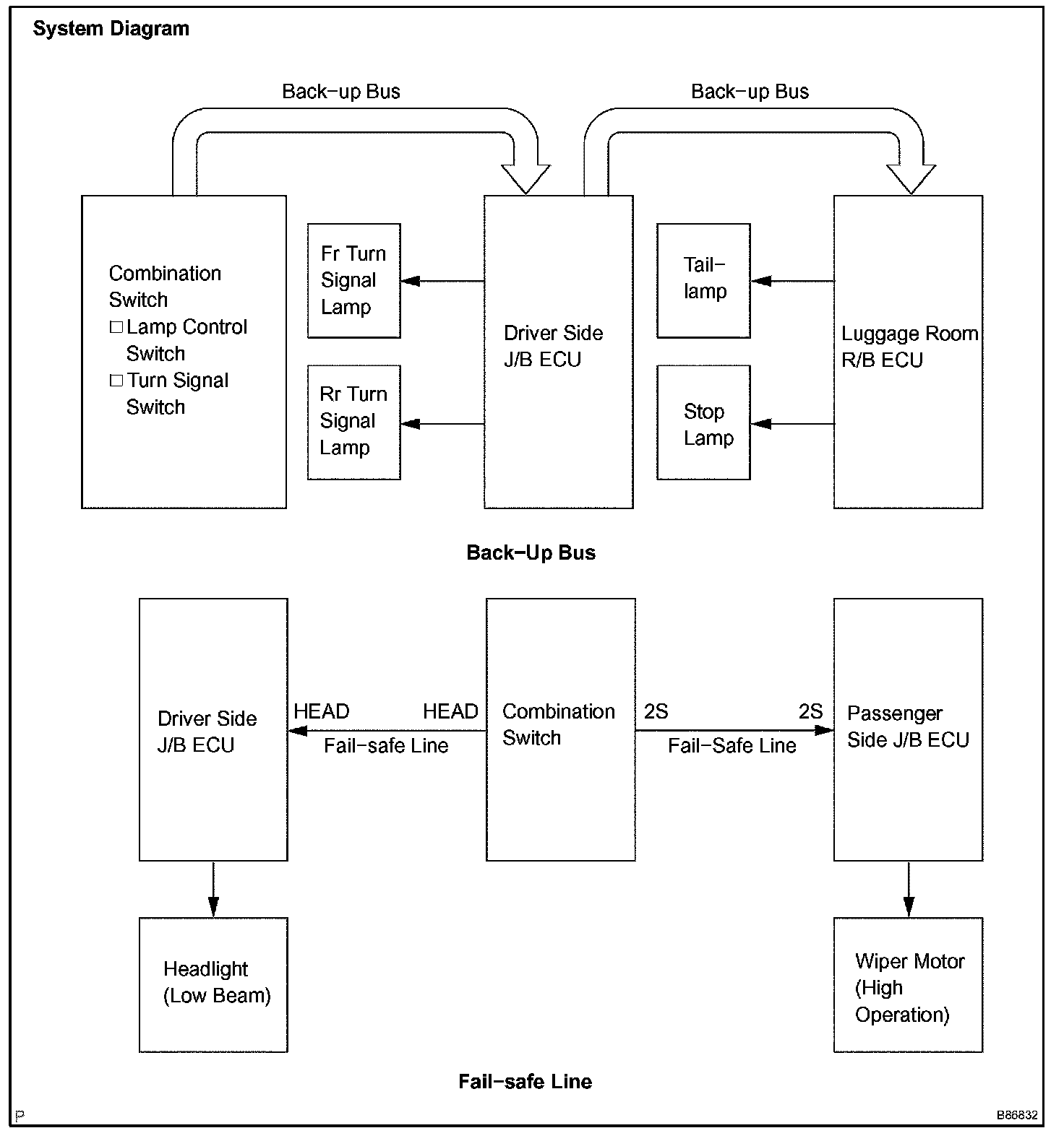 - To ensure low-beam headlight and wiper HI operations, a fail-safe line is provided.