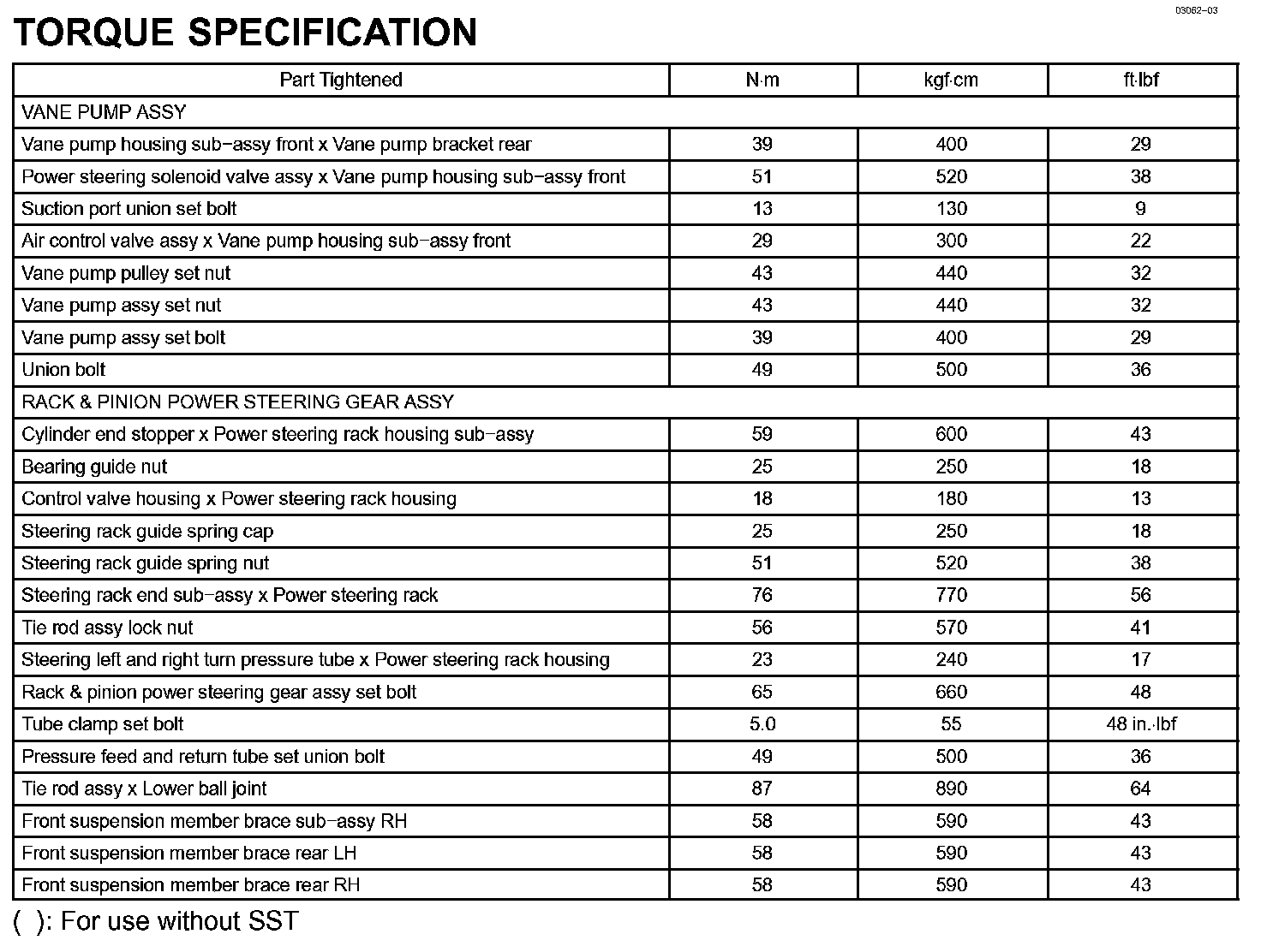 Power Steering-Torque Specification: