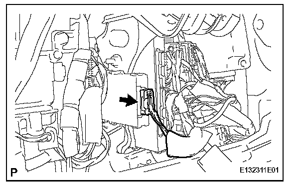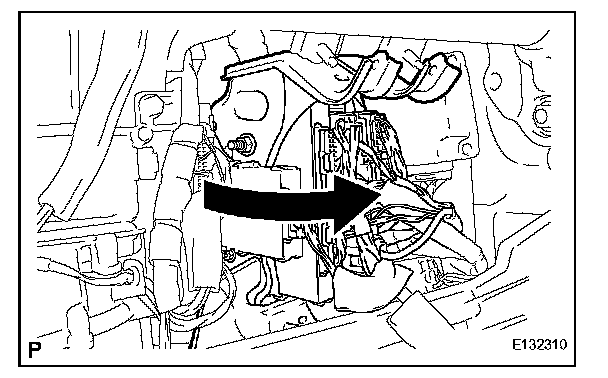b. Turn the certification ECU with instrument panel wire in the direction indicated by the arrow.