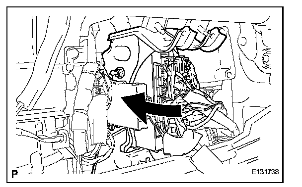b. Turn the certification ECU with instrument panel wire in the direction indicated by the arrow.
