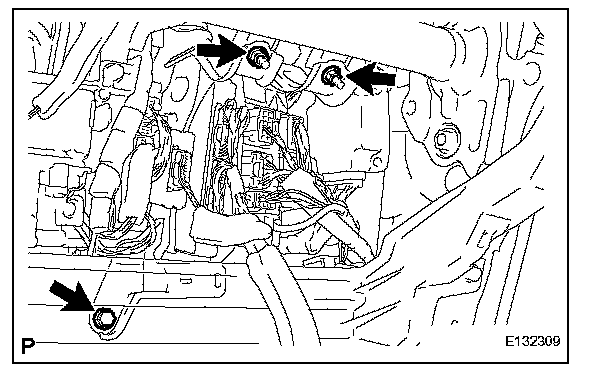 a. Remove the 2 nuts and the bolt and disengage the certification ECU with instrument panel wire.