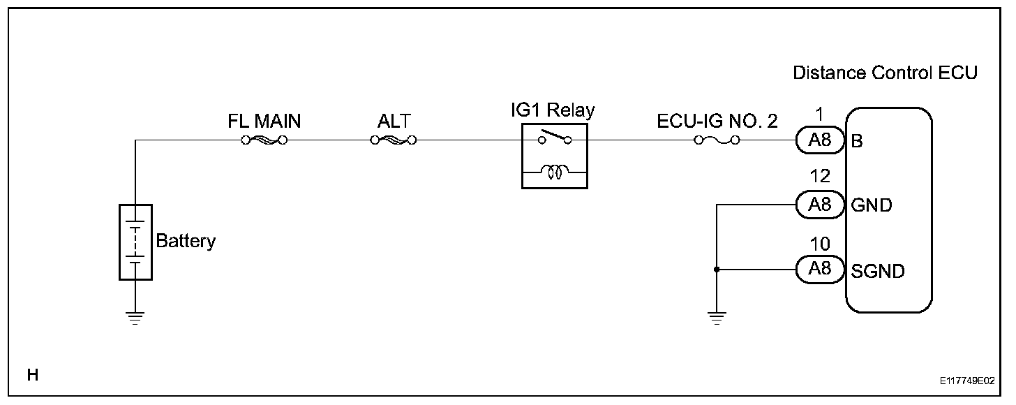 Distance Control ECU Power Source CircuitDESCRIPTION