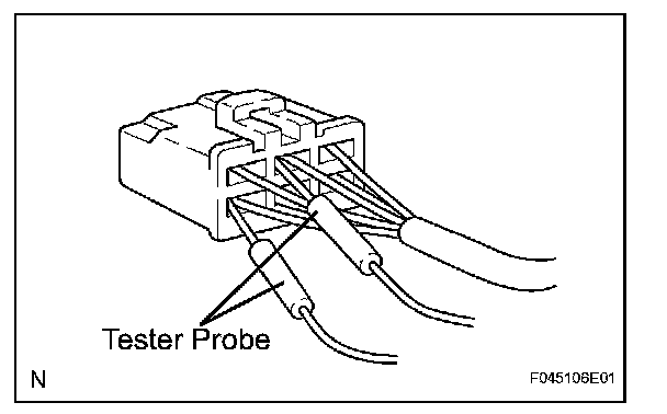 a. When checking resistance with a tester, insert the tester probes from the backside (harness side) of the connector.