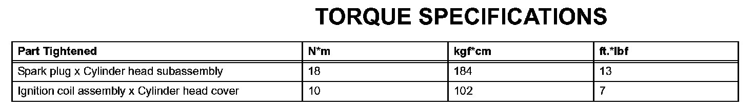 Ignition - Torque Specifications: