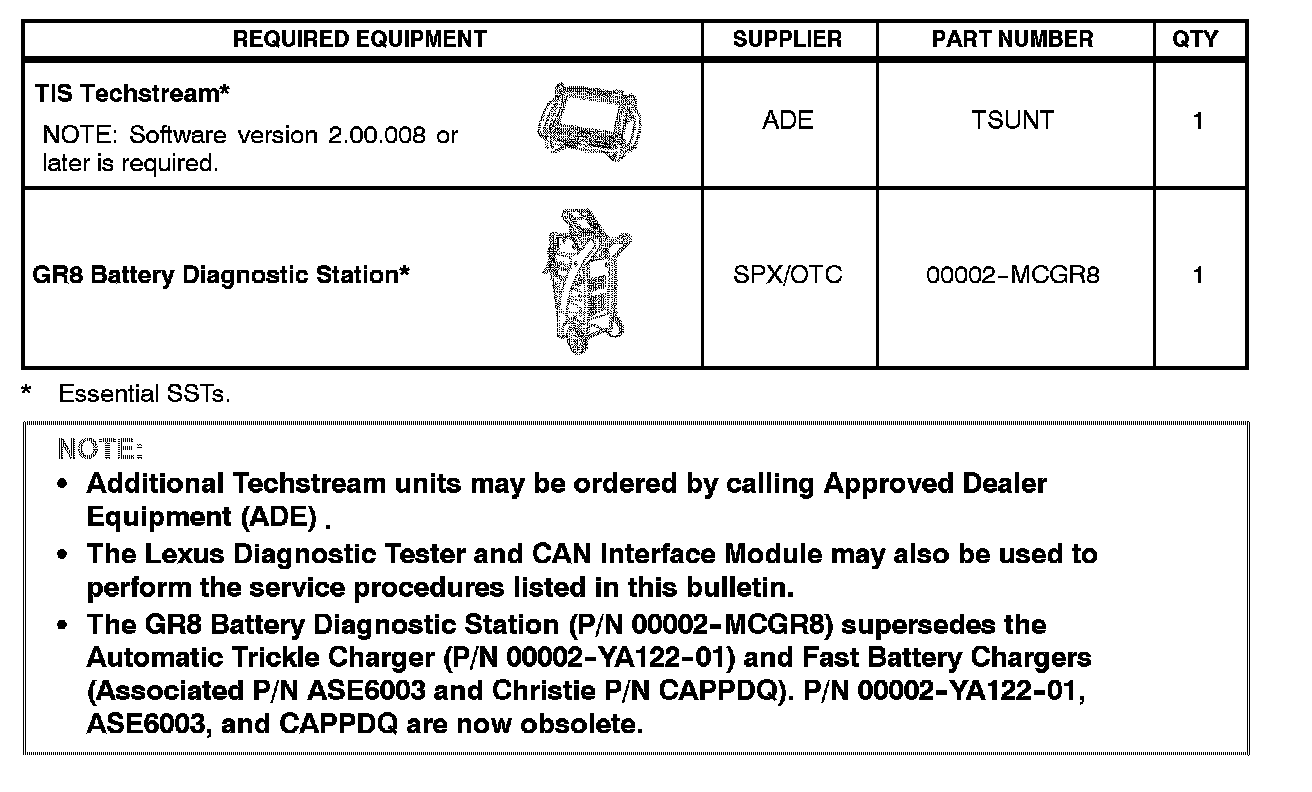 ^ For details on how to use the GR8 Battery Diagnostic Station, refer to the GR8 Instruction Manual located on TIS, Diagnostics - Battery.