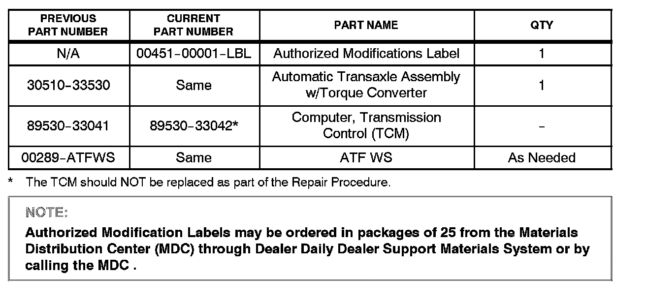 ^ TCM part number: [Refer to the Parts Information section for the CURRENT PART NUMBER]