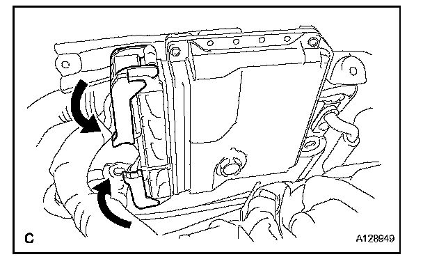 1. Raise the 2 levers while pushing the locks on the 2 levers, and disconnect the 2 ECM connectors.