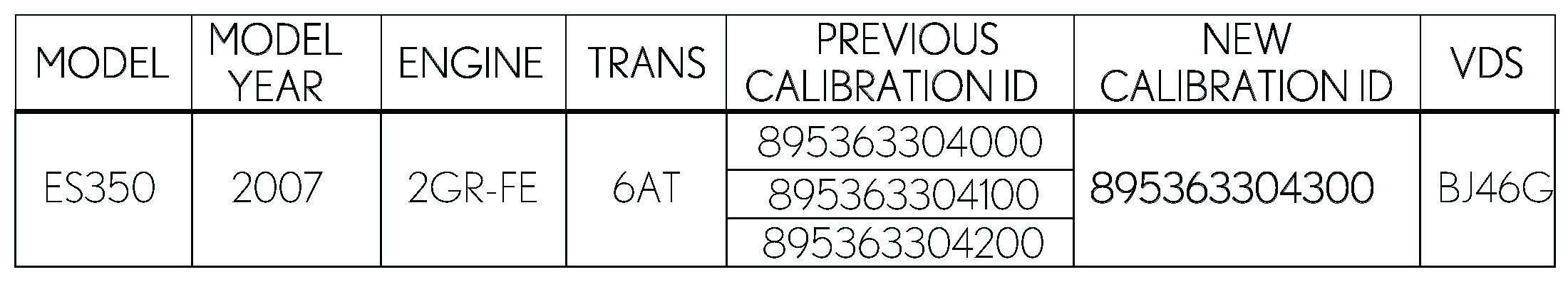- Calibration ID(s) [Refer to the Calibration Identification Chart for the NEW CALIBRATION ID]