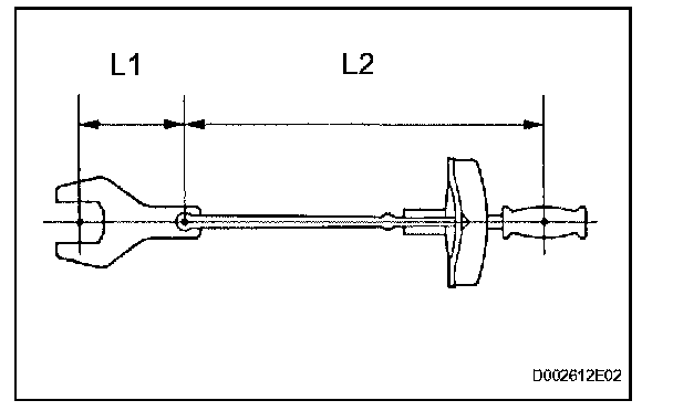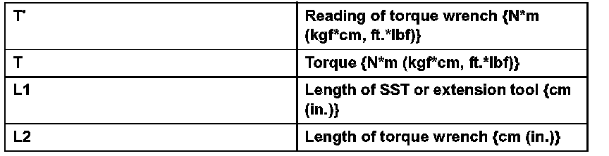 1. Use the formula below to calculate special torque values for situations where SST or an extension tool is combined with the torque wrench.