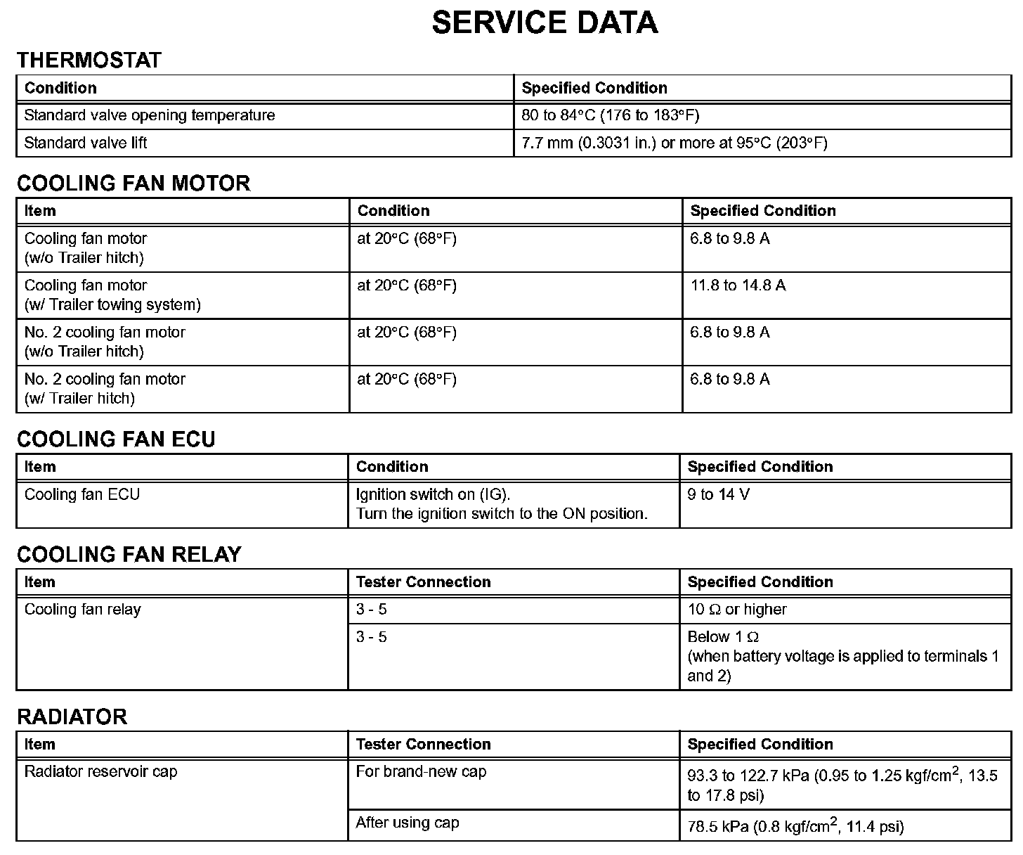 Cooling - Service Data: