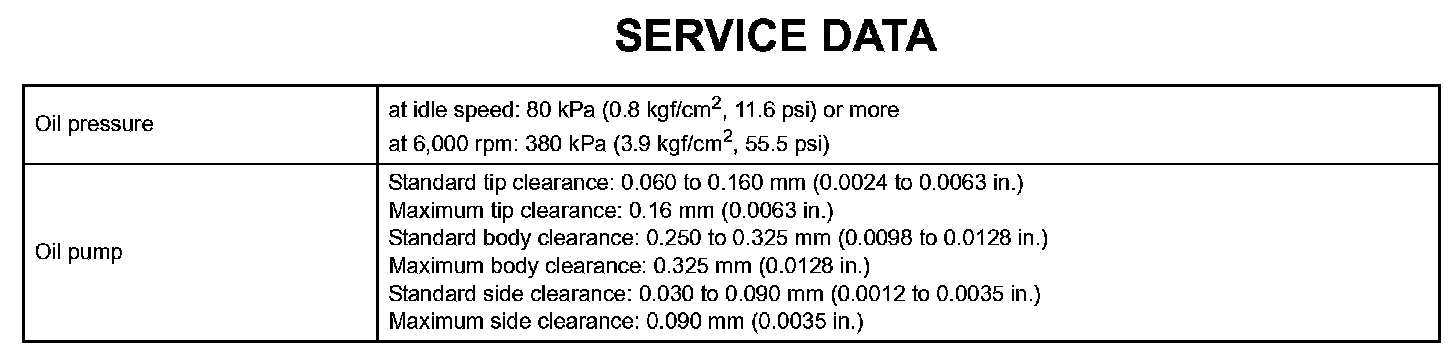 Lubrication - Service Data: