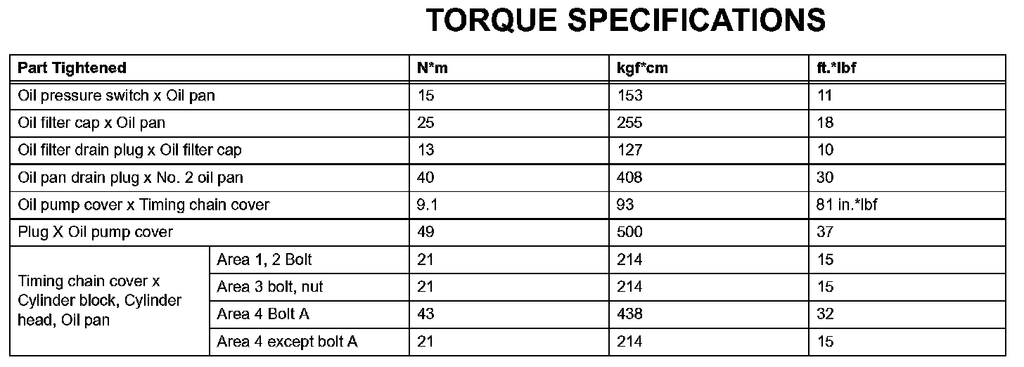 Lubrication - Torque Specifications: