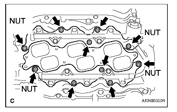 Install the exhaust manifold sub-assembly LH with the 6 nuts.