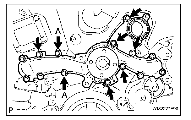 Be sure to replace the bolts indicated by A with new ones or reuse them after applying adhesive 1344.