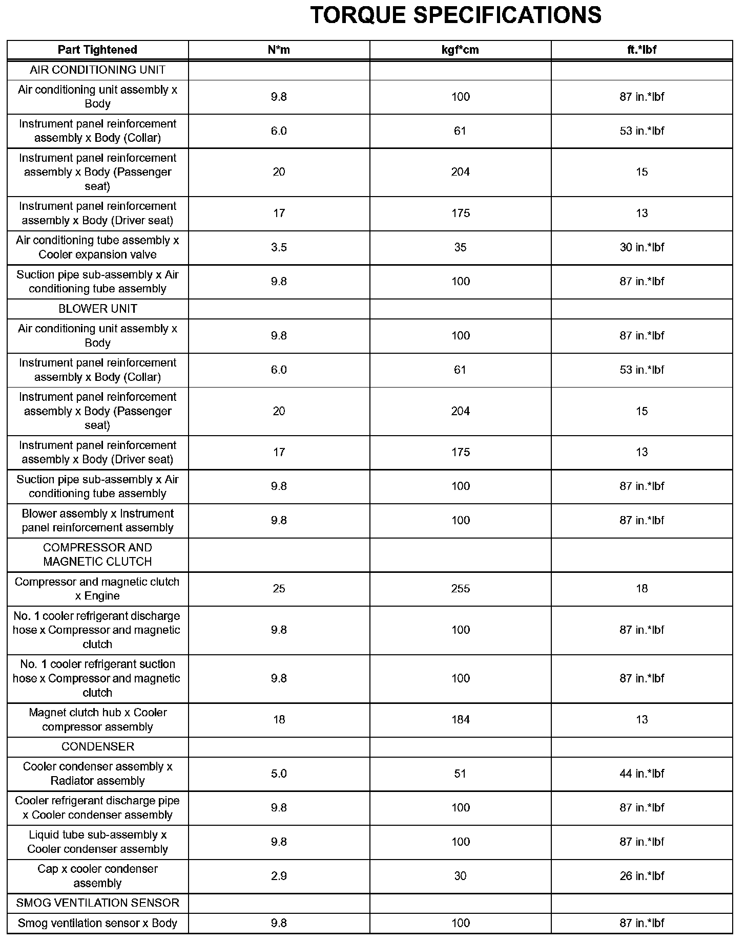 Air Conditioning - Torque Specifications: