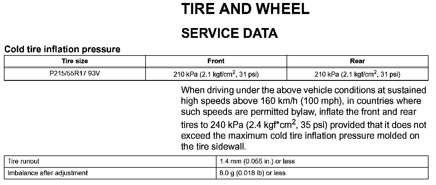 Tire And Wheel - Service Data: