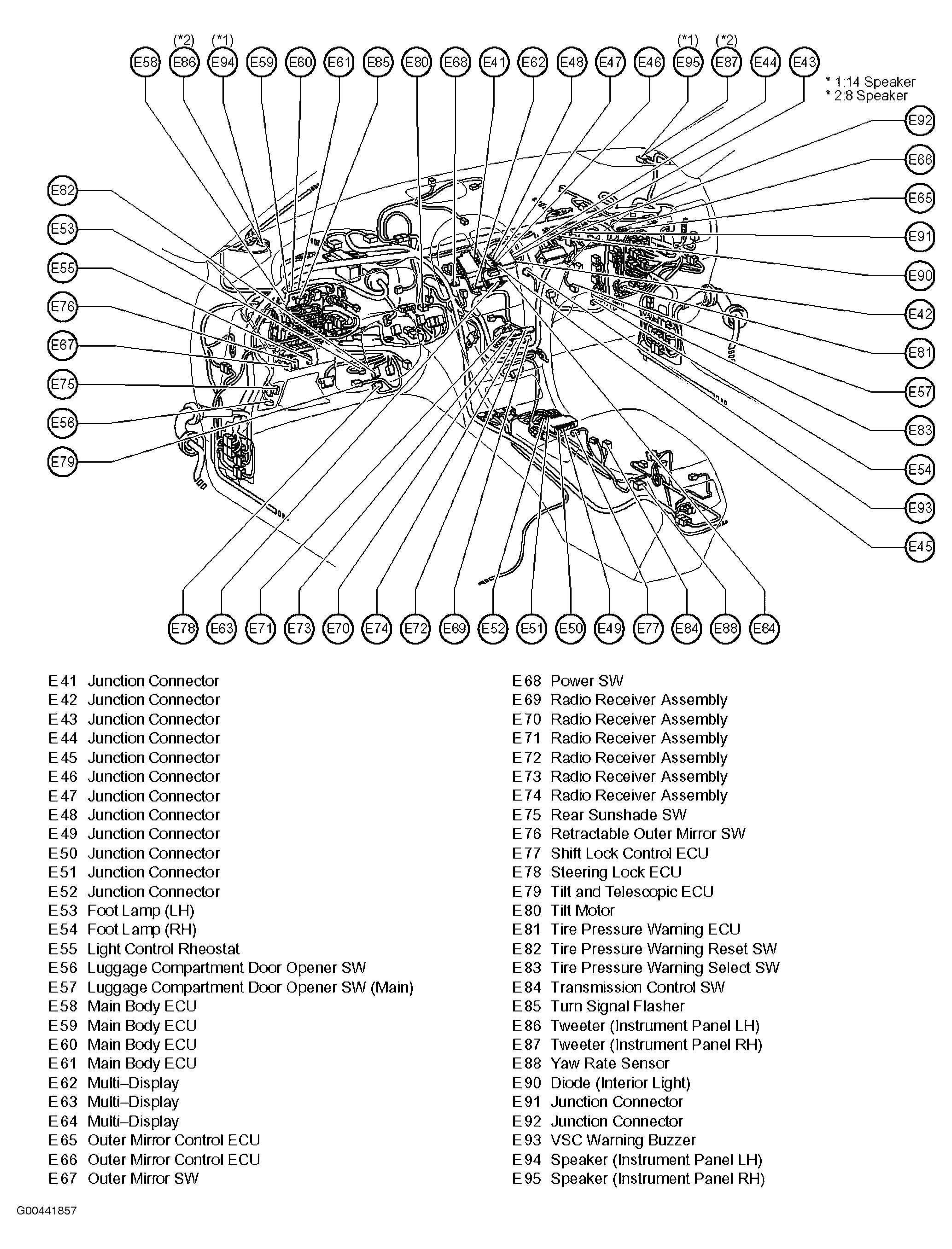 | Junction Connector E91 | Right side of dash. See Figure. |