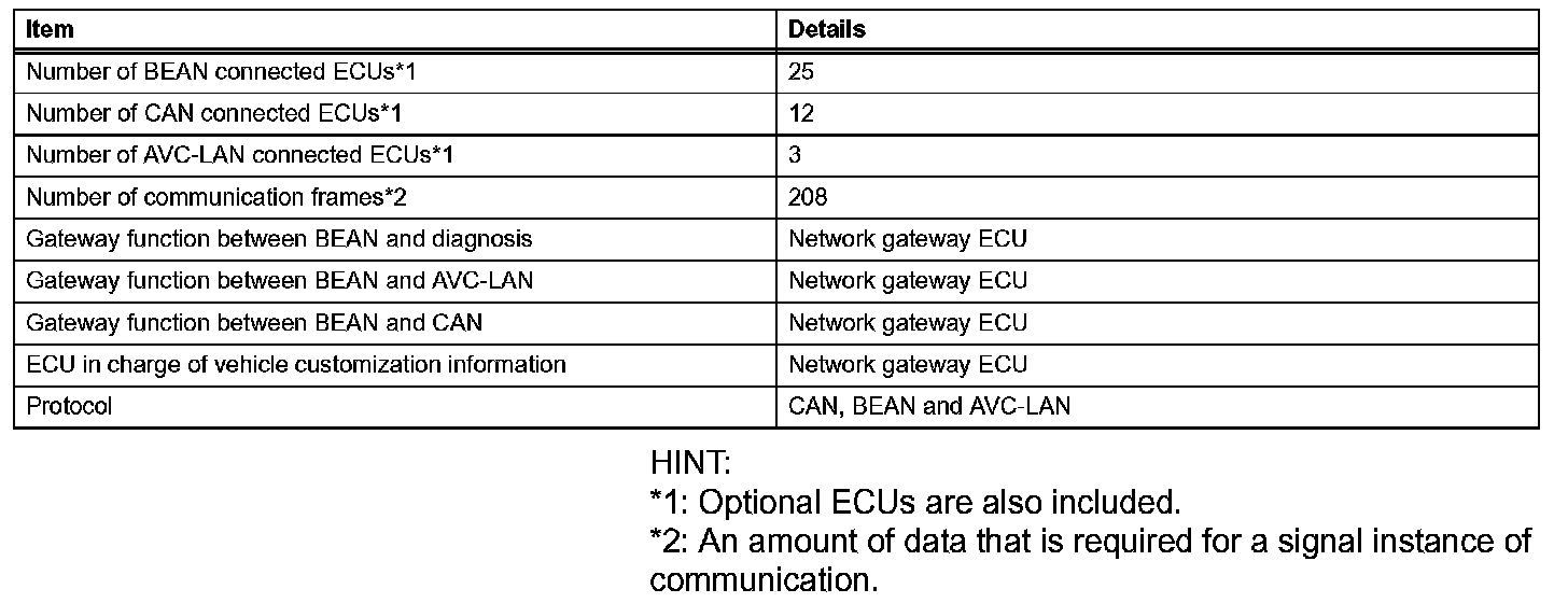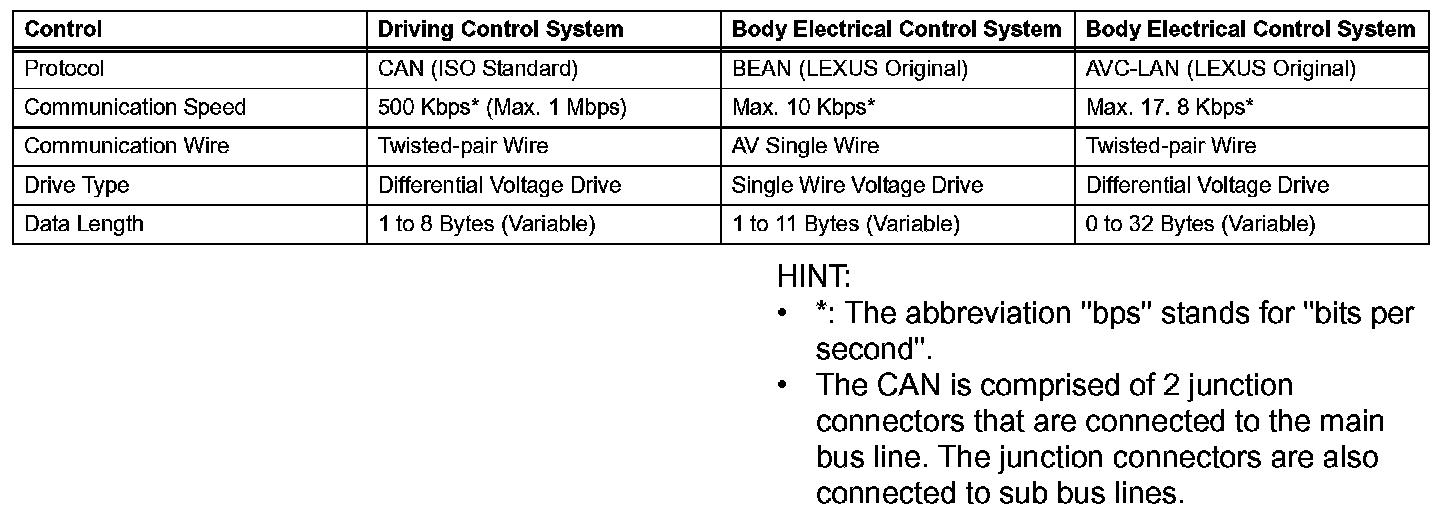 1. The CAN, BEAN and AVC-LAN protocols have set guidelines for data. The guidelines include communication speed, type of communication wire, drive type and data length. These guidelines are established to facilitate ECU data communication.