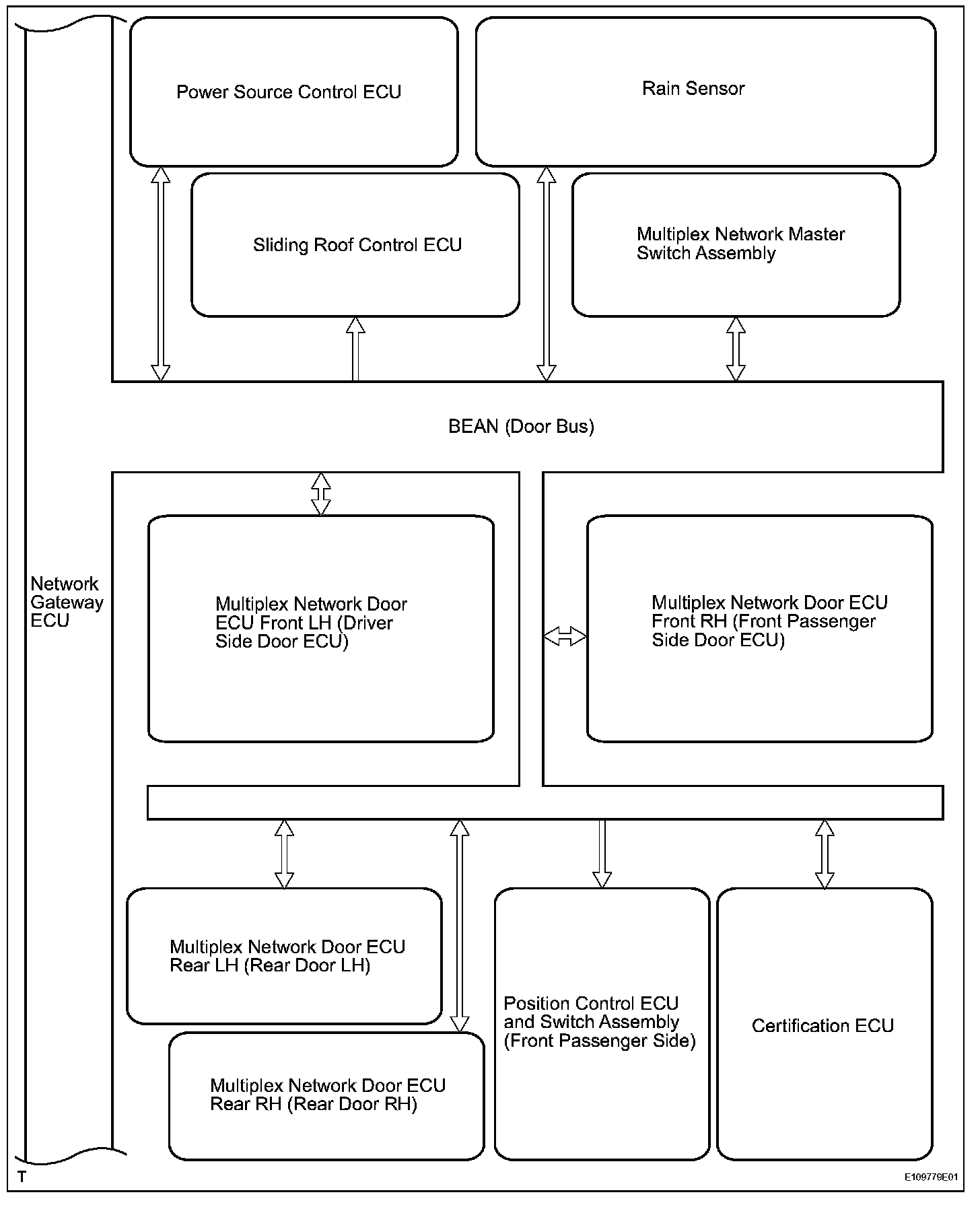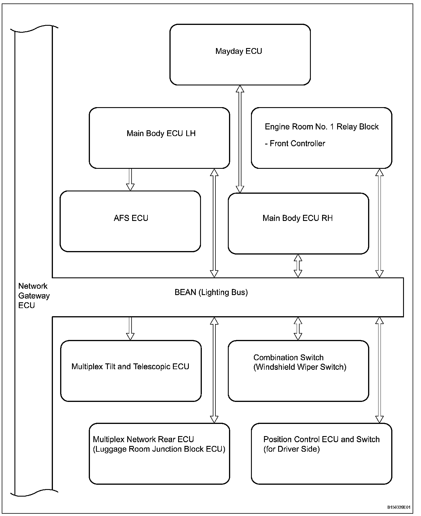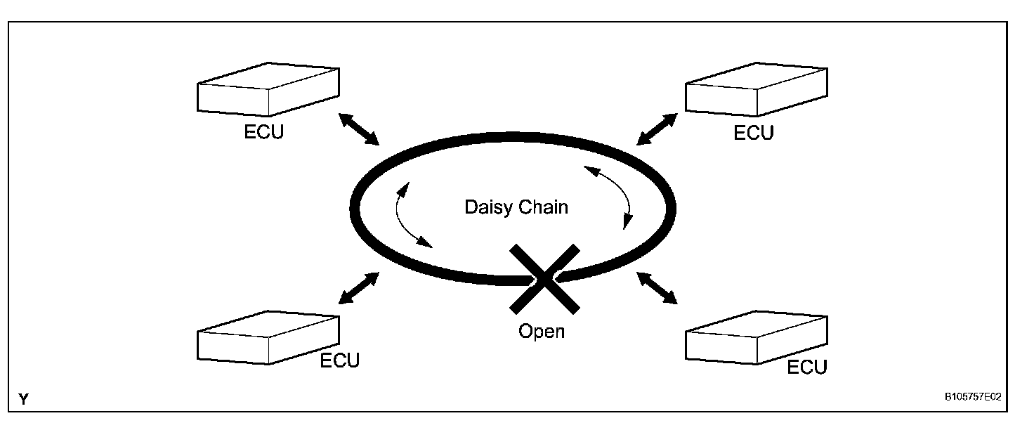 1. The BEAN uses a ring and bus style of network to connect ECUs. This style of communication method is called a daisy chain. In a daisy chain, communication can be maintained even if the network has an open circuit.