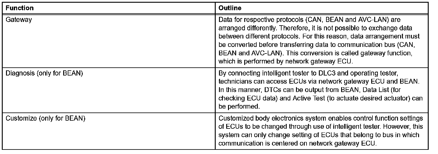 The network gateway ECU of the LEXUS GS430/350 has the following functions.