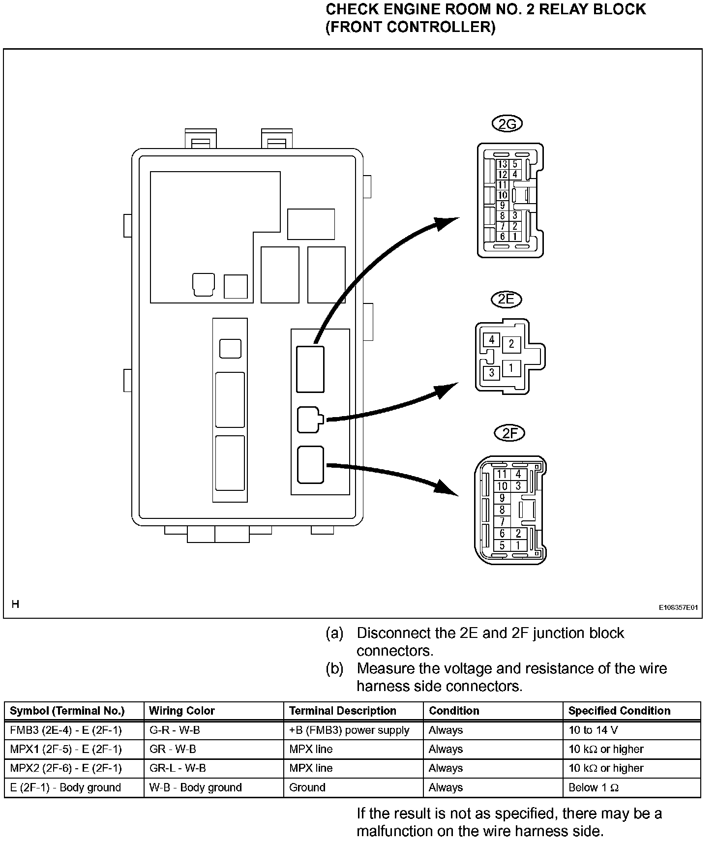 Terminals Of Control Module/Pinouts - Check Engine Room No.2 Relay Block (Front Controller):
