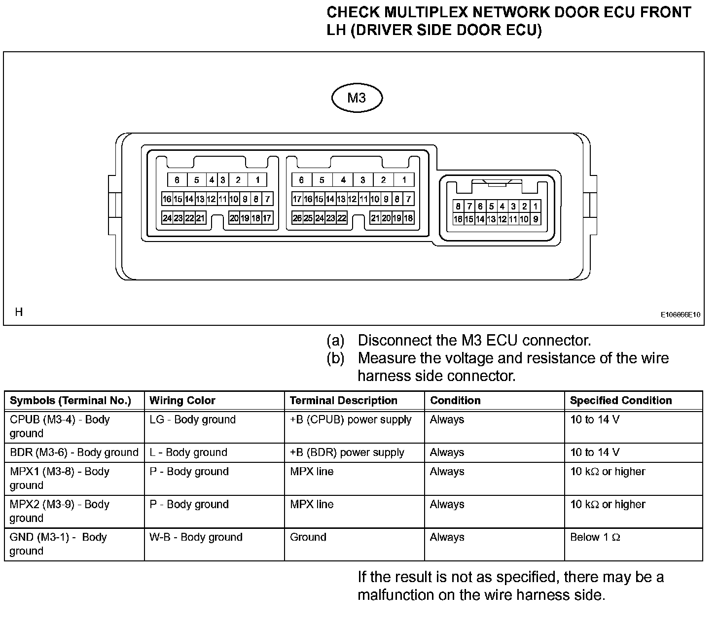 Terminals Of Control Module/Pinouts - Check Multiplex Network Door ECU Front LH (Driver Side Door ECU):