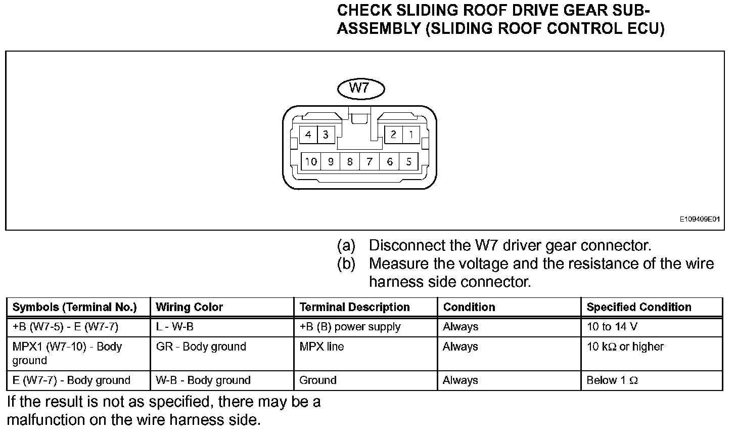 Terminals Of Control Module/Pinouts - Check Sliding Roof Drive Gear Sub-Assembly (Sliding Roof Control ECU):