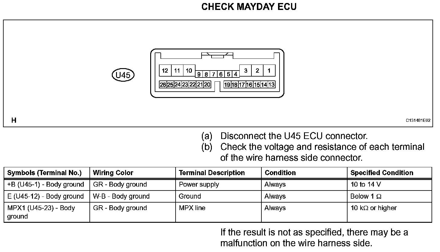 Terminals Of Control Module/Pinouts - Check Mayday ECU: