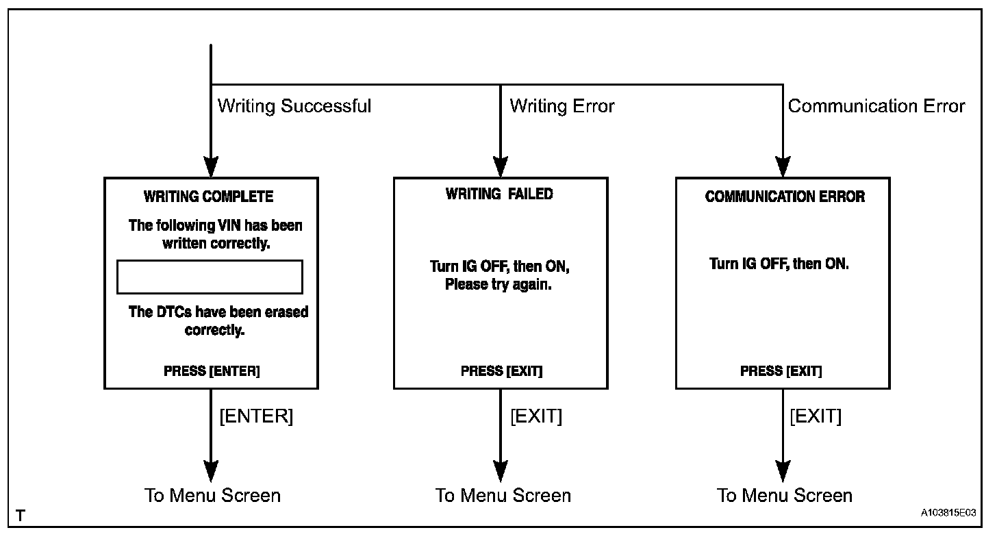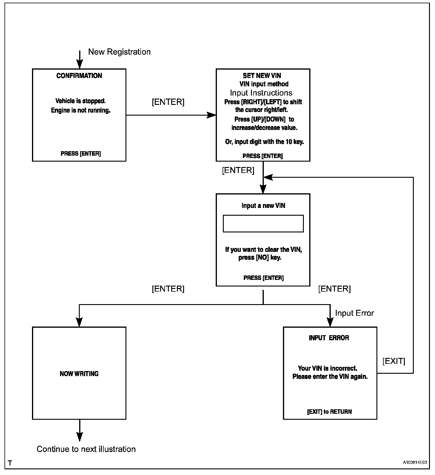 HINT: The flowchart of the VIN writing process is shown. This process allows the VIN to be input into the ECM. If the ECM is changed, or the VINs do not match, the VIN can be registered, or overwritten in the ECM by following this procedure.
