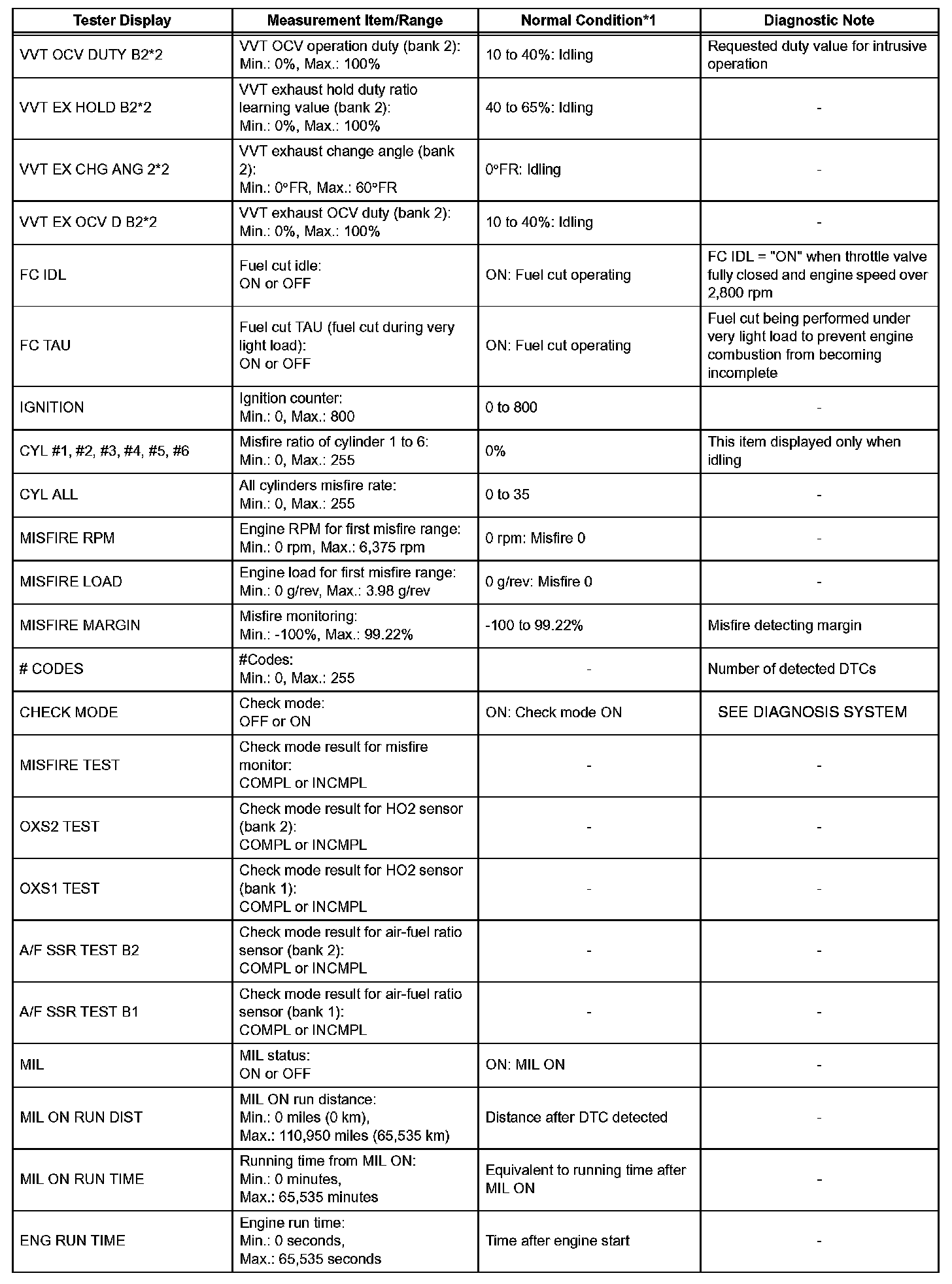 DATA LISTHINT: By reading the DATA LIST displayed on the intelligent tester, you can check values, including those of the switches, sensors and actuators, without removing any parts. Reading the DATA LIST as the first step of troubleshooting is one method of shortening diagnostic time.
